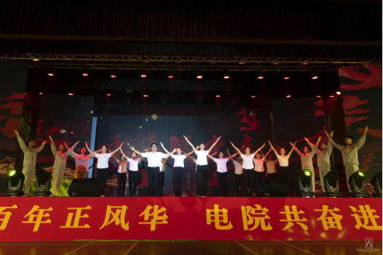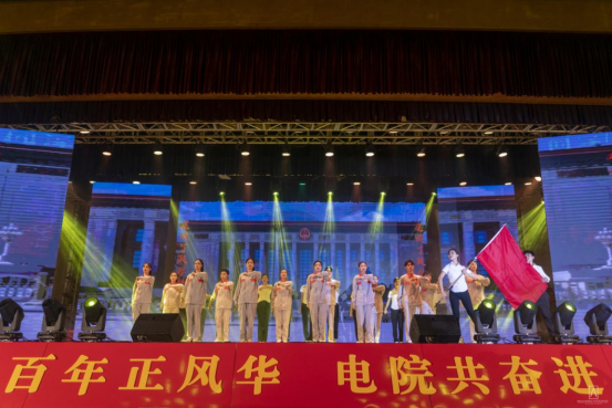 6月30日,为隆重庆祝中国共产党成立100周年,由学校党委宣传部和团委举办的“百年正风华 电院共奋进”文艺晚会在东校区四楼大礼堂举行,共有17个由校内各党支部(总支)选派的节目参加此次文艺汇演,我院参演的情景剧《永远跟党走》演出取得圆满成功。