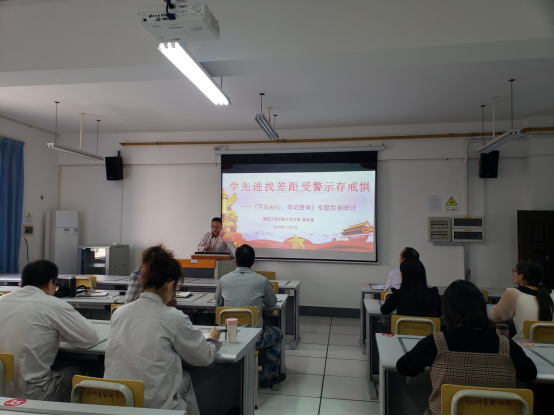 为深入学习“不忘初心、牢记使命”主题教育,2019年11月7日下午,建筑工程系党总支召开“学先进找差距,受警示存戒惧”专题研讨。研讨主要包括观看先进事迹视频,通报近期党员违法违纪警示案例,党员教师重点发言和自由发言等四个议程。