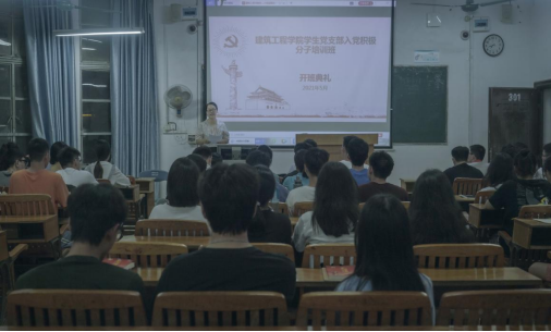 在雄壮的国歌声中,建筑工程学院第3期入党积极分子培训班正式开班,开班仪式由学生党支部书记谢玉荣主持,学院党总支副书记白家成在开班仪式上致辞并给参加培训的学员授课专题一《加入中国共产党是当代大学生实现人生理想的正确选择》。