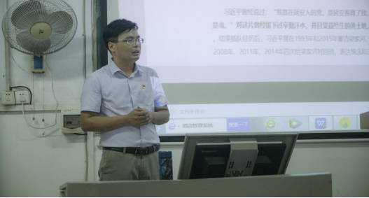 他引用习近平总书记7年知青岁月里曲折而坚定的入党故事切入主题,引导学员思考:当代大学生为什么要加入中国共产党?为什么说加入中国共产党是大学生实现人生理想的正确选择?一是从当代青年的应肩负时代赋予的重任;二是从当代青年应积极加入中国共产党,青春勇担当两方面加以论述,强调新时代中国青年要继续发扬五四精神,以实现中华民族伟大复兴为己任,不辜负党的期望、人民期待、民族重托,不辜负我们这个伟大时代。