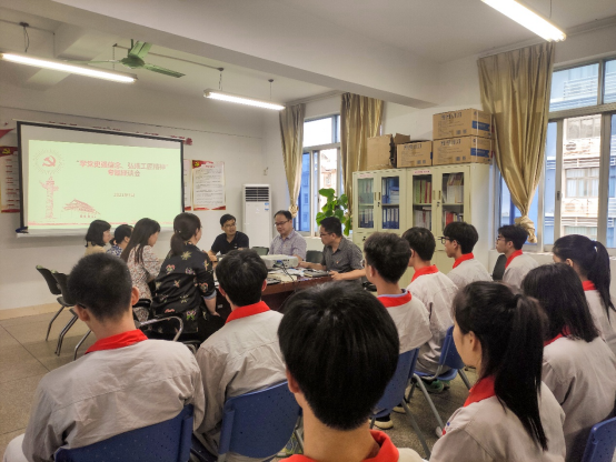 2021年5月24日17:00在东校区401办公室召开“学党史强信念、弘扬工匠精神”专题座谈会,学校纪委书记黄强、学院党总支书记曾云辉、学院党总支副书记白家成、学生党支部书记谢玉荣、学院党政办公室主任黎洪叶、学院团总支书记李莎、学工秘书杨夏添、10名入党积极分子参加会议。