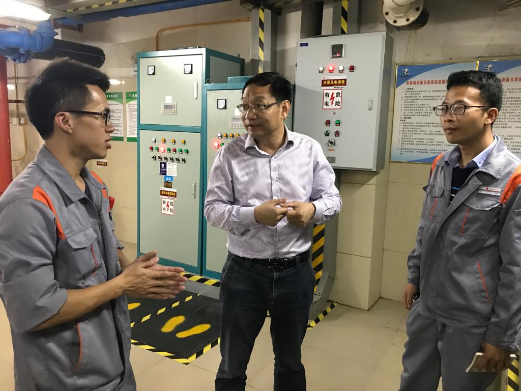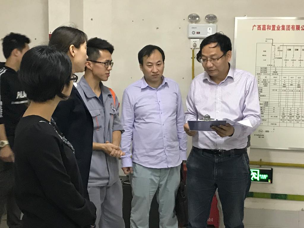 在调研过程中,刘主任一行首先参观了南宁嘉和城塞纳左岸楼盘的给水和消防泵房、建筑变配电房、应急电源机组房、安防监控室等场所和设施,学习企业的工作流程和管理规范。校企双方还就如何加强理论教学与企业实践的融合、实习实训基地建设等方面进行深入交流,对促进我系校企合作发挥了积极的作用。