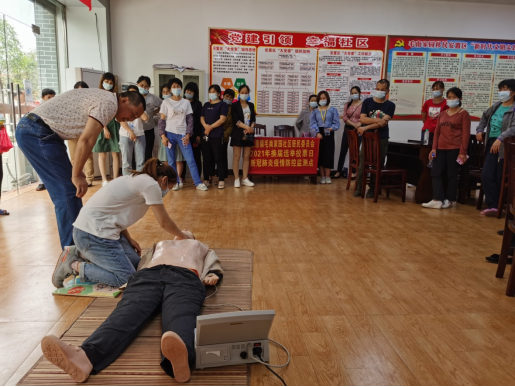 谭纪军老师正在指导安置点车间工人心肺复苏急救操作
