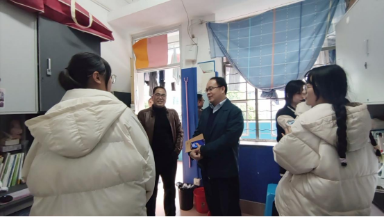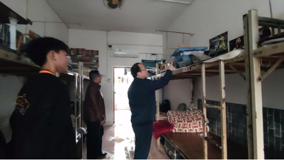 座谈会后,黄强书记还实地到班级宿舍走访。每到一个宿舍,黄强书记都会详细地询问同学们的学习及生活情况,叮嘱同学们注意身体,时刻也不忘要加强疫情安全防范,在宿舍也要积极消毒通风,保持良好的卫生状况。针对学生提出有关宿舍维修、热水供应等问题,黄强书记表示会和学校党委反馈,进行研究,尽早解决。同时,还鼓励同学们认真复习,为即将到来的期末考试做好准备。