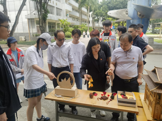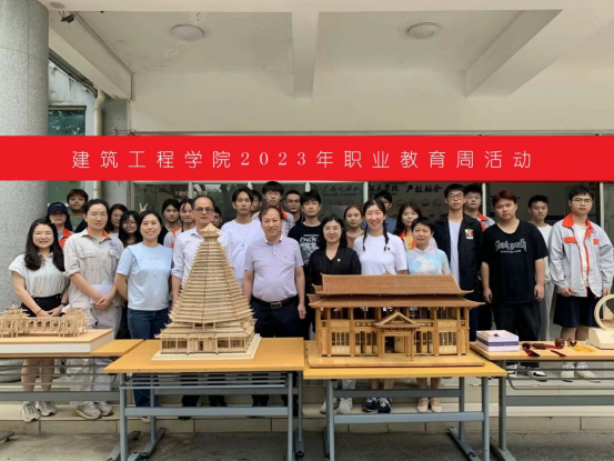 5月23日下午,建筑工程学院开展了以非遗文化为主题的职教活动周。结合产业学院特色、专业课程将非遗文化融入教学以及课程思政当中,教师带领学生分别以侗族木构模型、榫卯结构创意设计产品、文创产品三个切入点进行设计,设计成果在实训楼前中进行展示。