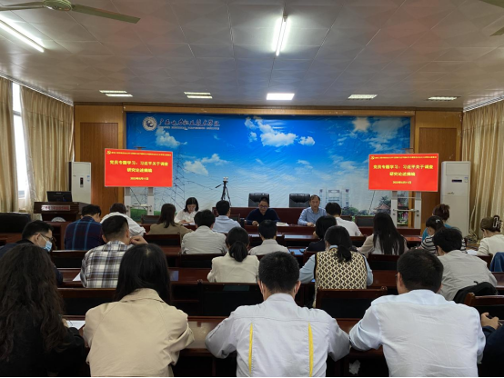 本次学习会传达学习了学校党委印发的《关于印发<中共广西电力职业技术学院委员会关于大兴调查研究开创学校高质量发展新局面的实施方案>的通知》要求,分篇章原原本本、逐段逐句学习了《习近平关于调查研究论述摘编》主要内容。