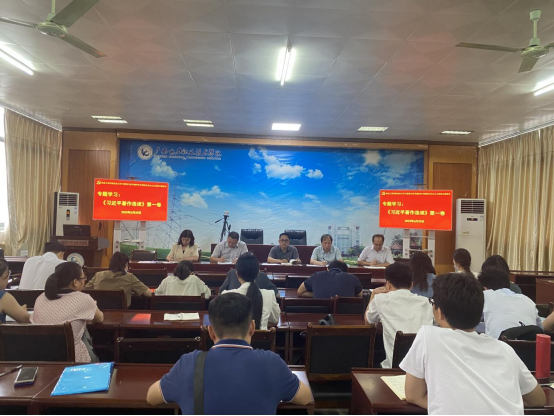 6月20日下午,建筑工程学院在科园校区办公楼7楼会议室开展《习近平著作选读》第一卷专题学习会,会议由党总支曾云辉书记主持,全体教职工参加会议。
