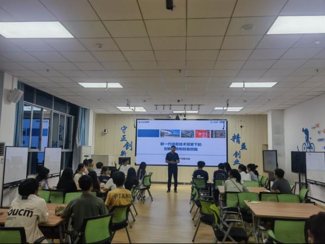 为让全院学生了解新一代信息技术的最新发展,深入探讨创新趋势和创意挖掘的方法和途径。2023年10月26日晚,建筑工程学院联合学校创新创业学院,在科园校区图书馆六楼创新工坊开展创新创业大课堂,邀请业内知名专家,北京中关村智酷双创有限公司产品总监、中国国际互联网+大学生创新创业大赛多省省赛评委朱广超老师,作“新一代信息技术背景下的创新趋势和创意挖掘”主题讲座。