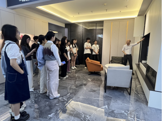 为深化产教融合,拓宽学生行业视野,2025年4月23日,我院建筑室内设计专业2309班全体同学在李莉老师的带领下,前往广西中宅装饰集团开展实践交流活动。本次活动以“理论结合实践,赋能设计未来”为主题,通过企业参观、工艺讲解、互动研讨等环节,为学生搭建了近距离接触行业前沿的平台。