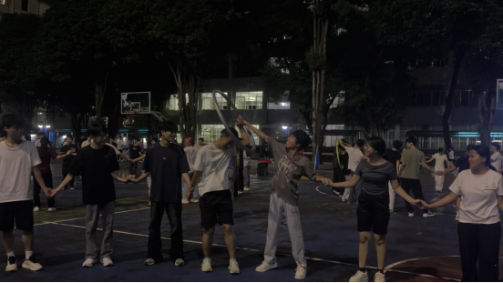“一圈到底”项目作为活动的收尾,为“未来共赴”注入了活力与信心。新生们手拉手站成圆圈,在不松手的前提下,需通过身体的灵活转动,让呼啦圈依次穿过每个成员。在不断的尝试与调整中,各团队的效率逐渐提升,最终都成功完成挑战。当最后一个呼啦圈顺利传递完毕时,现场欢呼声此起彼伏。新生们在欢声笑语中,不仅锻炼了身体的协调性,更感受到了团队合作带来的快乐与成就感,也更加坚定了与团队携手“未来共赴”的决心。
